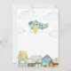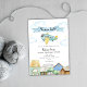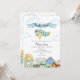 Niedliche whimsical Flugzeug Pilor Baby Dusche Thema, Design mit Aquarell Vintagen Stadt und blau und gelb Aviator über den Himmel mit "Adventure Awaits" Text, perfekt für Baby und Mädchen Babydusche. Sie können Ihren eigenen Text und Farbe anpassen.