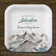 Diese Babyduschplatte bietet ein rustikales Bergabenteuerthema, das eine wilde Wasserlandschaft mit Bergen, Teichen und Kiefern zeigt. Dies ist perfekt für ein Outdoor-Event.