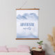 Niedliche Monogram Typografie "Adventure Awarits" in Winterthemen mit Schneebergbau-Design perfekt für Kinderzimmer, Spielzimmer, Kinderzimmer, Schlafzimmer. Dekor im Kinderzimmer. Design für geschlechtsneutrales Baby.