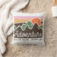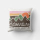 Ein cooles Typografie-Design mit einer farbenfrohen Berglandschaft, das lautet: "Abenteuer erforschen - mehr erkunden, weniger Sorgen machen".