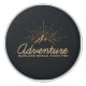 Keramik-Drehknopf mit goldfarbener Abbildung auf schwarz-grauem Hintergrund. Entworfen mit einer Abbildung eines Berges, in dem die Sonnenstrahlen von hinten leuchten. Typografie sagt: Erlebnis entdecken Traum entdecken.