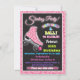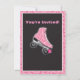 Super fun Glow in der dunklen Roller Skaten Geburtstagsparty Einladungen. Mit einem glänzenden rosa Imitat Sequin Roller Skate und boarder und lustige Typografie. Handgezeichnete Abbildung von McBooboo. Diese leuchten nicht im Dunkeln.