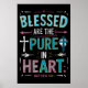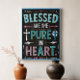 Handgezeichnet Bibelkomödie Gesegnet sind die Reine im Herzen - Matthew 5.8 verwoben mit einem zarten Kreuzsymbol.