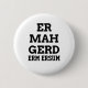 Dorky und Spaßtypographietext-Entwurfsknopf, der ein Wort vom populären meme von Ermahgerd kennzeichnet. Ermahgerd ist eine sehr abscheuliche und gelispelte Weise, "oh meinen Gott zu sagen!" Fertigen Sie mit Ihrer eigenen Text- und Hintergrundfarbe besonders an. Benutzen Sie einen ermahgerd Übersetzer wie dieser [http://ermahgerd.jmillerdesign.com/#!/translate] um Sie personalisierten Text sogar albern zu machen!