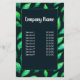 Eleganter botanischer personalisierter Flyer mit Mischmedienfarbe und digitaler Malerei abstrakter grüner Blätter mit hellgrünen Adern über dunkelgrün, fast schwarz, Hintergrund. Auf der Rückseite können Sie auch den Firmennamen, die Dienstleistungen und die Preise ändern. Sie können auch den Zweck dieses Flyers komplett ändern. Wenn Sie Hilfe bei der Anpassung benötigen, kontaktieren Sie mich einfach und ich werde Ihnen gerne helfen.