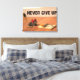 Leinwand einer mutigen braunen Maus, die einen Helm trägt und versucht, Käse aus einer Falle zu stehlen, mit den Worten "NIE GIVE UP" in schwarzem Schriftart. - Vollständig anpassbar - *Der Preis kann nach der Anpassung höher oder niedriger sein. Auch als Poster, als Karte oder gerahmt erhältlich.