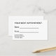 Bulk Budget freundlichen Termin Visitenkarten Vorlage in einem einfachen klassischen Termin Erinnerung Layout können Sie online anpassen. In loser Schüttung erhältlich für medizinische, berufliche oder Dienstleistungsunternehmen.