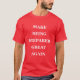 Basic Classic T Shirt gedruckt mit einem Make America Great Again play auf den Worten Make Be Prepared Great Again mit weißem Text auf MAGA roten Hintergrund Farbe Stil durch TheFabricSeal Print on Demand Shop unter Zazzle.com #ZazzleMade https://www.zazzle.com/store/thefabricseal TheFabricSeal ©️ Original. Dies ist ein Stück auf den Worten von Präsident Donald Trumps berühmtem Zitat "Make America Great Again" Diese ikonische MAGA rot-weiß populäre Produkte müssen nicht nur eine trendige Aussage, sondern zeigt auch Ihre Unterstützung für Präsident Trump und seine Vision, Amerika wieder groß zu machen. Rot zeichne die meiste Aufmerksamkeit und ist mit starken Emotionen wie Wut, Leidenschaft und Liebe verbunden. Es ist universell benutzt, um Mut, Power, Kraft und Gefahr zu verkörpern. Bequem, locker sitzend, perfekt für den entspannten Freizeitlook - unser schweres dunkles T-Shirt wird bald eins Deiner liebsten Stücke sein. Aus 100% Baumwolle hergestellt, ist es unisex und trägt gut auf jeden. Klicken Sie auf die Schaltfläche "Anpassen", um daraus ein personalisiertes oder mit Monogramm Produkt zu machen. Sie können Textfarben und den Stil des Schriftartes ändern, indem Sie die weitere Option anpassen. Entwerfen Sie Ihre eigenen. Mach' es dir zu eigen. Gutes Geschenk für Familie, Freunde und natürlich für Sie selbst.