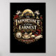 Ein reich verzierter viktorianischer Bucheinbandentwurf für Oscar Wildes klassische Komödie, mit vergoldeter Typografie, Putten, roten Rosen, einer Taschenuhr, Teetasse und Verlobungsring vor einem dramatischen schwarzen Hintergrund.