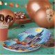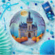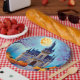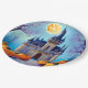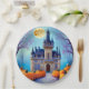 Teller von Moon Pumpkin Castle Papier - die Farben sind blau, orange, braun und creme.