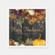 Die Blume des Herbstes und der Kürbisrahmen auf einem dunkelbraunen Holzboden verbrennen eine schöne rostige Orange und eine dunkelbordeauxfarbene Farbe. Das charmante Erntedank-Dinner mit personalisierten Papierservietten mit einer angesagten Goldtypografie-Schrift. ++++++++ Einfach mit Ihrem Text personalisieren! Geeignet für die traditionelle rustikale Bauernhaus Freiluft-Garten Familie und Freunde Party oder Grill.