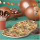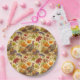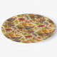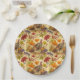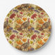 Ein wilder Truthahn ist umgeben von Kürbissen, Trauben, Beeren, Nüssen und bunten Herbstblättern auf dunklem cremefarbenem Hintergrund. Ideal für Erntedank!