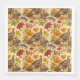 Ein wilder Truthahn ist umgeben von Kürbissen, Trauben, Beeren, Nüssen und bunten Herbstblättern auf dunklem cremefarbenem Hintergrund. Ideal für Erntedank!