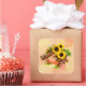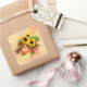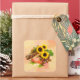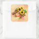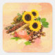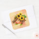 Viereckiger Aufkleber mit einem Bild von Dingen Erntedank, wie Ohren von indischem Mais, große gelbe Sonnenblumen, Kastanien, Herbstblätter und eine orange stimmliche Kerze auf Gelb- und Orangengrunge. Siehe dazu passende Vinyl-Aufkleber, Grußkarte, Etikett und Konfetti. Sehen Sie sich die gesamte Erntedank-Aufkleberkollektion unter CARDS & STICKERS im Bereich HOLIDAYS an.