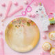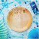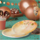 Erntedank- und Erntedesign mit Blätter und Beeren auf einem orangegelben Hintergrund mit Glitzern.