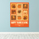 Dekorieren Sie Ihre Zuhause mit einem Erntedank Briefmarke Collage Leinwand drucken. Dieses Kunstwerk mit Retro-Illustrationen in warmen Herbsttönen eignet sich hervorragend für Eintritte, Küchen oder Speisesäle, um die Ferienzeit zu genießen.