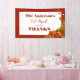 Erntedank feiern, essen, trinken und danken. Farbenfrohe Herbstblätter und verbranntes orangefarbenes Schnittmuster. Fügen Sie Ihren Familiennamen zu diesem Banner hinzu, um ein individuelles Begrüßungsbanner für den Erntedank zu erhalten. Sicher, um die perfekte Touch zu Ihrem Erntedank und Herbst Party. Großartiges Design aus TLS Designs.