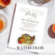 Dieses Design besticht durch ein Erntedank-Dinner mit einem klassischen und eleganten Herbstthema, Wasserfarbenkürbis, Kornucopia-Horn von viel, mit Gemüse, einem stilvollen, eleganten, ideal für Friendsgiving, mit rustikalem Bauernhaus, botanischer Orange und Salbei grün