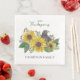 Erntedank Familie Crow in Sonnenblumen Papier Abendessen Napkins. Set Sie Ihren Tisch in diesem Herbst mit diesen bezaubernden Servietten, die eine originale Aquarellmalerei einer schwarzen Krähe zeigen, die in einem Garten von Herbst-Blume sitzt. Hellgelbe Sonnenblumen verleihen diesem Design einen festlichen und saisonalen Beifall. Perfekt für Erntedank- und Herbstveranstaltungen! Fügen Sie Ihren Familiennamen, das Jahr und die Veranstaltung (oder als Erntedank verlassen) zu einer ganz besonderen und personalisierten Ergänzung Ihrer Tischumgebung in diesem Jahr hinzu!
