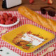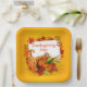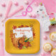 Ein schönes und festliches Erntedank-Tagesplateau in Orange mit Herbstlauben und Cornucopia