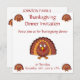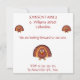 Erntedank Dinner Einladungen mit lustigem Truthahn und anpassbarem Text, auf weißem Hintergrund gedruckt.