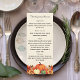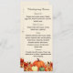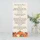 Cremefarbener Hintergrund mit Blume und Kürbis in Orangetönen. Personalisieren Sie Ihre Erntedank-Menüs auf der Vorderseite und fügen Sie sie hinzu. Zurück: Platz für Sie, um Ihrem Gast eine dankbare Nachricht hinzuzufügen. Und ein Bereich für die Gäste, um ihre Begeisterung zu teilen.