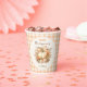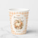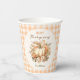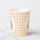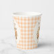 Erntedank Dinner Paper Cups in elegantem, modernem Bauernstil, mit Blumenkürbis und Gingham in sanften Orange, Creme und Grün auf dem cremefarbenen Hintergrund. Personalisieren Sie den Text einfach. Kate Eden Art