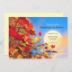 Erntedank Dinner Einladung mit einem meiner Kunstwerke von einem bunten und leuchtenden Herbstapelbaum und Sonnenschein.