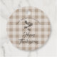 Eine erdig-farbene Herbsttaupe kariertes Design mit Illustrationen oder rustikalem Laub. Ein dekoratives saisonales Herbstdesign mit individuellem Familiennamen und den Worten "Happy Thanksgiving". Ideal für Herbst Herbst und Erntedank Zuhause. Passen Sie den Text an und machen Sie ihn zu Ihrem eigenen.