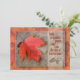 Dieses helle, orange und rot gefallene Blatt signalisiert den Herbstbeginn, die Erntezeit und die Annäherung des Erntedanks. Das Foto vorne zeigt warme Erdtöne und das Zitat "Komm, ihr dankbares Volk, komm, hieß das Lied der Ernte Zuhause!" Die Rückseite ist in koordinierend orangefarbenen Tönen bedruckt und hat eine braune Eiche und ein Blatt über einem vollständig anpassbaren Bereich. Personalisieren Sie die Einladungsinformationen mithilfe der einfach bereitgestellten Vorlage.