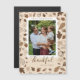 Auf dieser Erntedank-Karte steht das Wort "dankbar" im modernen Text, begleitet von Illustrationen von Kürbissen, Eicheln und Herbstlauben. Diese personalisierte Fotokarte lasse Ihnen einen beliebten Dankesmoment mit Lieben und Freunden zu teilen.