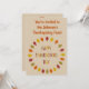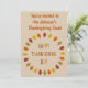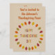 Dieses phantastische Erntedank-Fest bietet ein digitales Kunstbild einer Serie von Oak-Blätter in Rot-, Orange-, Gelb- und Grüntönen, die kreisförmig um einen Text angeordnet sind, der mit abwechselnden Buchstaben von Rot, Gelb, Orange und Grün den "Happy Thanksgiving Day" verkörpert. Auf der Vorder- und Rückseite ist ein benutzerdefinierbarer Text vorhanden, damit Sie diese Einladung personalisieren können.