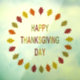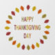 Dieses phantastische Fensterklammern zeigt ein digitales Kunstbild einer Serie von Oak-Blätter in Rot-, Orange-, Gelb- und Grüntönen, die kreisförmig um einen Text angeordnet sind, der mit den abwechselnden Buchstaben Rot, Gelb, Orange und Grün den Tag des Glücklichen Erntedankens markiert.