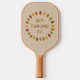 Dieses phantastische Pickleball-Paddel zeigt ein digitales Kunstbild einer Reihe von Oak-Blätter in Rot-, Orange-, Gelb- und Grüntönen, die kreisförmig um einen Text angeordnet sind, der mit abwechselnden Buchstaben Rot, Gelb, Orange und Grün den Glücklichen Erntedanktag verkündet.