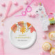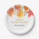 Diese modernen Erntedank Papier-Teller sind mit Aquarell-Herbstlauben in Herbstfarben dekoriert. Einfach anpassbar. Original Wasserfarbe © Michele Davies.