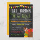 Phantastisch und festlich, dieser Erntedank oder die Party Einladung der Freundlichkeit ist ideal für festliche und lustige Partys! Das Hotel lädt mit stilvollem Imitat-Chalkboard-Hintergrund und einem festlichen Fallturkey ein. Holen Sie sich Ihren Erntedank oder freundliches Party richtig... diese Einladung wird sofort die Stimmung Set!