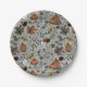 Die Teller aus Erntedank-Musterpapier bieten eine Herbsternte-Szene mit bunten Kürbissen, Kuhschädel mit Rose, Eicheln und Herbstblättern auf elegantem Hintergrund.