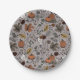 Die Teller aus Erntedank-Musterpapier bieten eine Herbsternte-Szene aus bunten Kürbissen, Kuhschädel mit Rose, Eicheln und Herbstblättern auf elegantem Taupe-Hintergrund.