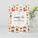 Flat danke Ihnen Karte mit einem saisonalen Erntedank Muster. Mit Whimsikpilgern, Puten, Kürbiskuchen und anderen Herbstthemen.
