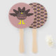 Dieser phantastische Handventilator verfügt über einen Cartoon eines Truthahns mit großen schwarzen Augen, einen kleinen gelben Schnabel und Schwanz-Federn. Die Füße stehen in entgegengesetzter Richtung, was den Truthahn goofy erscheinen lässt. Der Truthahn hat einen rosa Text auf seinem Bauch, der "Glückliches Erntedankfest" sagt und es sieht so aus, als wären die Federn ausgepeitscht worden, um die Botschaft zu verraten.