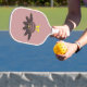 Dieses phantastische Pickleball Paddle verfügt über einen Cartoon eines Truthahns mit großen schwarzen Augen, einen kleinen gelben Schnabel und Schwanz Federn klebrig. Die Füße stehen in entgegengesetzter Richtung, was den Truthahn goofy erscheinen lässt. Der Truthahn hat einen rosa Text auf seinem Bauch, der "Glückliches Erntedankfest" sagt und es sieht so aus, als wären die Federn ausgepeitscht worden, um die Botschaft zu verraten.
