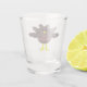 Dieses phantastische Schussglas weist einen Cartoon eines Truthahns mit großen schwarzen Augen, einen kleinen gelben Schnabel und Schwanz-Federn auf. Die Füße stehen in entgegengesetzter Richtung, was den Truthahn goofy erscheinen lässt. Der Truthahn hat einen rosa Text auf seinem Bauch, der "Glückliches Erntedankfest" sagt und es sieht so aus, als wären die Federn ausgepeitscht worden, um die Botschaft zu verraten.