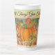 Personalisieren Sie diesen einzigartigen "One of a Kind" Erntedank Latte Tasse! Es verfügt über einen wunderschönen Orangen Kürbis, umgeben von Herbstlauben in Orangen- und Grüntönen mit Orangen Berries und Braunen Pilzen und dem Christlichen Zitat..."In allem gibt Dank!"! Dies ist ein Original Art Design von Künstler Kerry Miller.