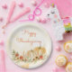 Wunderschöne Herbstfarben "Glückliches Erntedankfest" Schreibpapiertafel mit orangefarbenen Wasserfarbenkürbis und Blume.  Schön für Ihre Feiern und Abendessen.