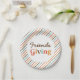 Freunde Giving!l Retro Schriftart Erntedank Abendessen Party Teller mit Streifen.