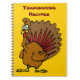 Erntedank Rezepte Notebook. Oder passen Sie es mit Ihrem eigenen Titel an oder entfernen Sie den Text ganz. Niedlicher komischer Truthahn. Cartoon zum Thema Erntedank. Braun Truthahn mit roten Federn, gelbem Schnabel und großen googly Augen.