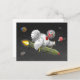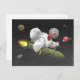 Eine lustige und süße Erntedank Holiday Postcard, wo die Türkei aus dem Erntedank entkommen ist und mithilfe seiner Rakete durch das Universum reist.