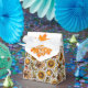 Eine wunderschöne Zelt-Gastgeschenk-Geschenkboxen für den Erntedank Tag, die in einem Herbstthema von Truthühnern, Sonnenblumen und Kürpen.