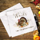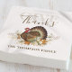 Dieses Design umfasst Erntedank Herbsternte Truthühner, Erntedank Dinner Party Tischdekor, eine elegante Wasserfarbe Natur rustikal, Bauernhof-Klassiker, traditionelle Ferien-Natur Familienname, angepasste Kalligraphie-Skript, ein whimsical Typografie Schriftart Text, moderne Familie zusammenkommen, eine klassische traditionelle Papier Party-Serviette, eine klassische Erntedank turkey Illustration