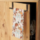 Dieses Handtuch ist von Puten in klassischen Pilgerhüten umgeben, umgeben von wunderschön detaillierten Kürbissen, lebendigen Herbstblättern und Blumenakzenten. Die reichen, erdigen Orangen-, Braun- und Rottöne schaffen eine gemütliche und einladende Atmosphäre, während zarte, wirbelnde Weinberge und sanftes grünes Blattwerk eine skurrile Touch bringen.
